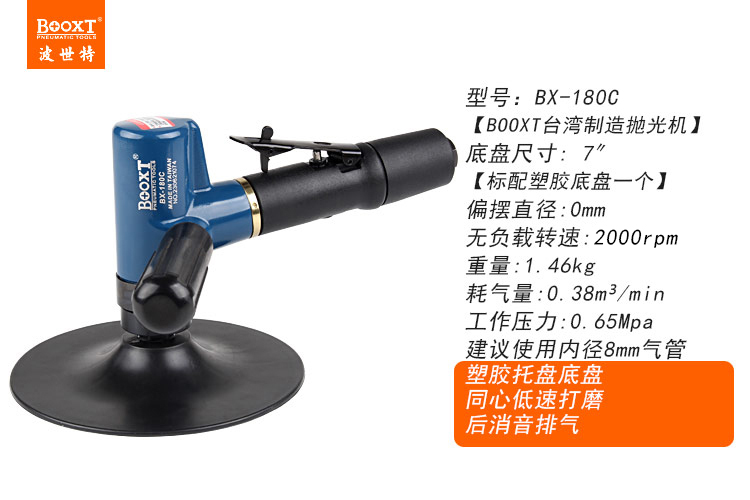 東莞強勁五金工具有限公司提供臺灣BOOXT波世特氣動工具,7寸氣動拋光機BX-180C廠家直銷,首件享特價。咨詢熱線:4008301980