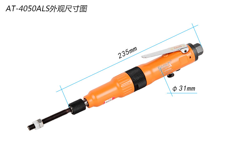 • 產品參數: 螺絲規格:M3-8 夾頭尺寸:1/4" 空載轉速:1700rpm 最大扭力:3Nm 全 長:235mm 重 量:0.61kg 耗 氣 量:5cfm