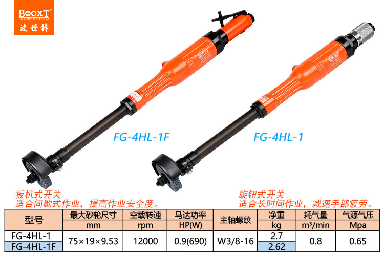 東莞市強(qiáng)勁五金工具有限公司提供臺灣BOOXT波世特品牌氣動工具,加長直柄風(fēng)動砂輪機(jī)FG-4HL-1廠家直銷,首件享特價。咨詢熱線:4008301980