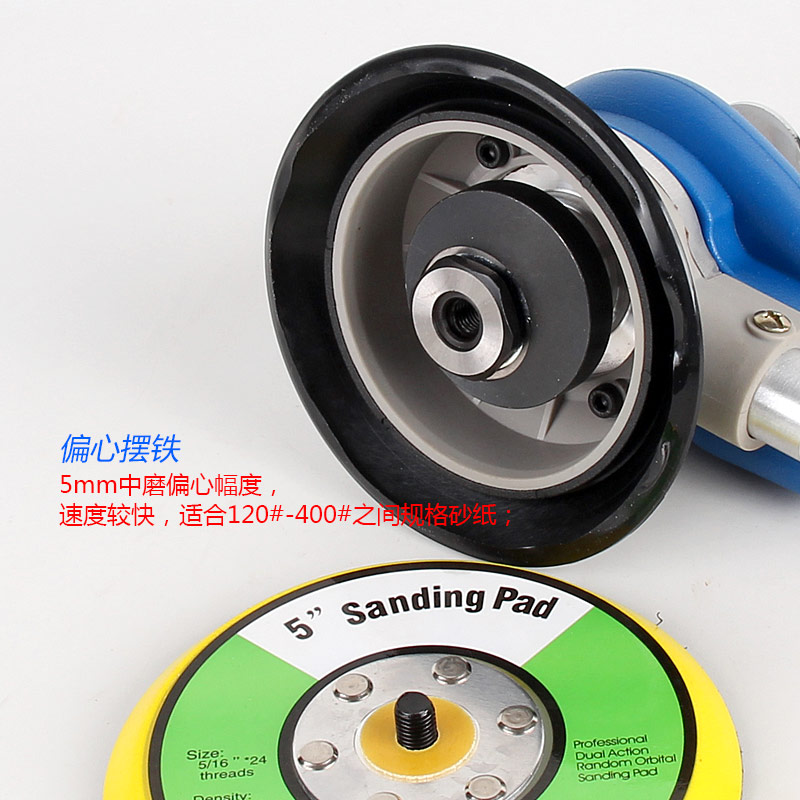 --粗磨偏心度幅度為9.5mm,扭力大,切削能力更大,適合重力打磨。工件一般幅面較大,要求打磨速度快,粗糙的打磨表面,如:玻璃鋼,UV,原子灰等材質(zhì)比較硬的工件,所用砂紙規(guī)格120#以下;