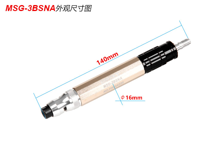 • 產(chǎn)品參數(shù): 夾頭能力:M2.3 /M3.0 空載轉速:60000rpm 全 長:140mm 重 量 : 0.06kg 耗 氣 量:0.14m3/min 【經(jīng)濟型/大扭力設計】