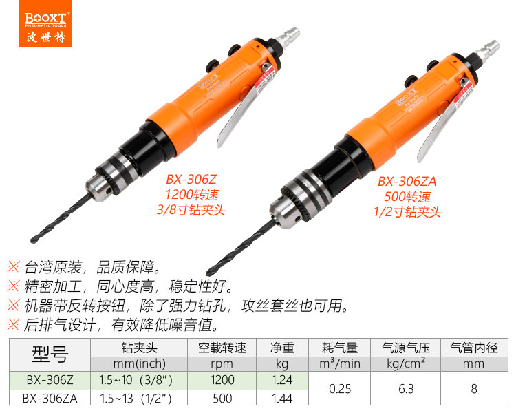 東莞市強勁五金工具有限公司提供臺灣BOOXT波世特品牌氣動工具,直式氣動鉆BX-306ZA廠家直銷,首件享特價。咨詢熱線:4008301980