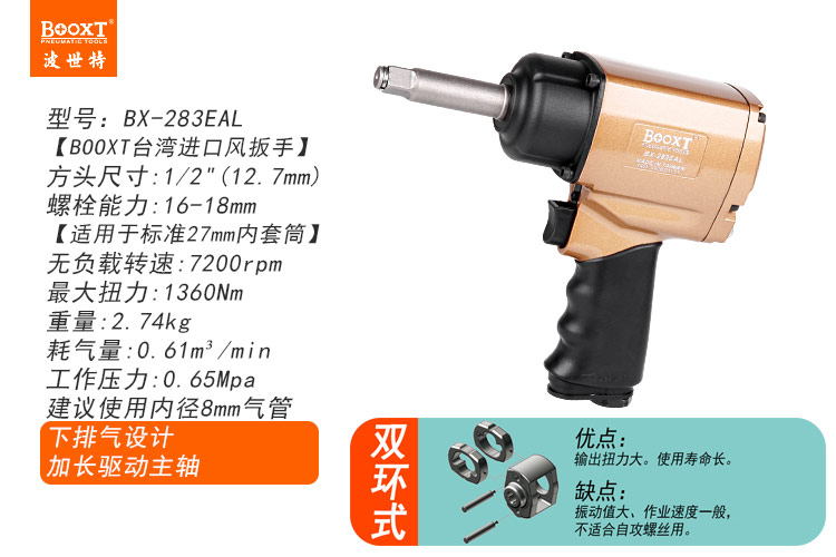 東莞市強勁五金工具有限公司提供臺灣BOOXT波世特品牌氣動工具,加長軸氣動扳手BX-283EAL廠家直銷,首件享特價。咨詢熱線:4008301980
