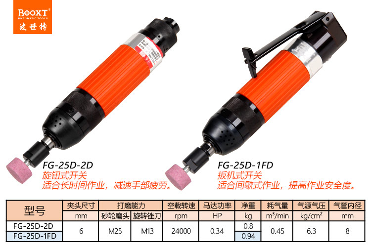 東莞市強勁五金工具有限公司提供臺灣BOOXT波世特品牌氣動工具,氣動風磨FG-25D-1FD廠家直銷,首件享特價。咨詢熱線:4008301980