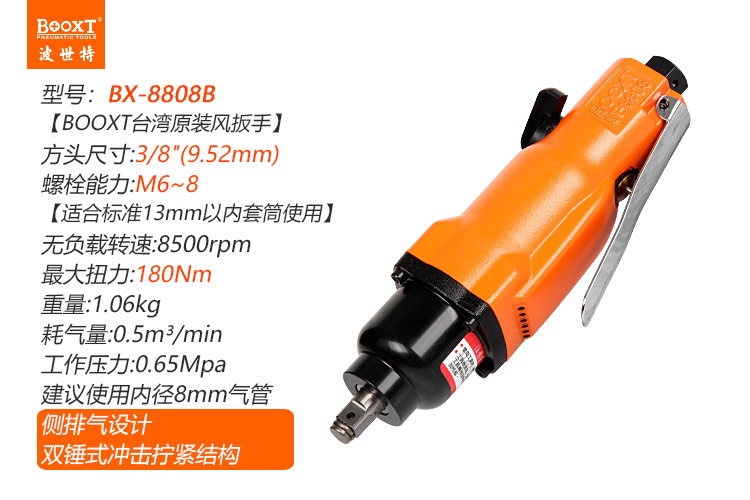 東莞市強勁五金工具有限公司提供臺灣BOOXT波世特品牌氣動工具,直式風動扳手BT-8808B廠家直銷,首件享特價。咨詢熱線:4008301980