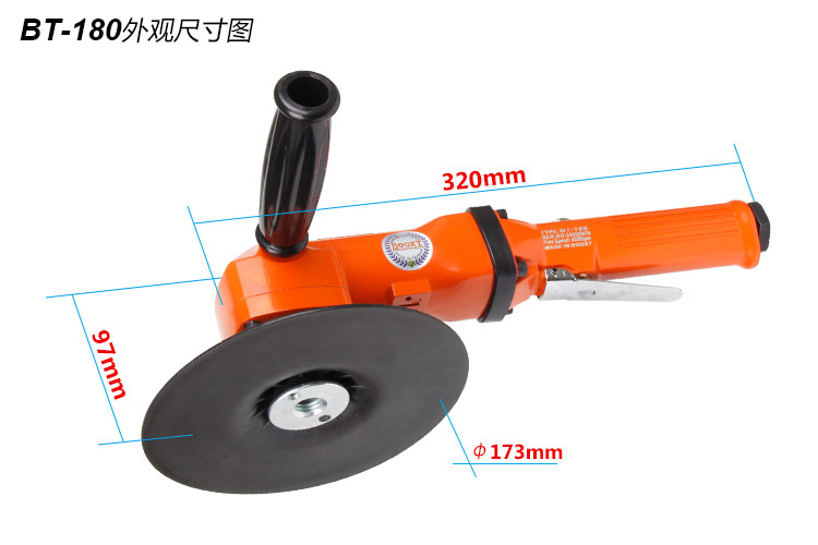• 產(chǎn)品參數(shù): 底盤尺寸:180mm 【7寸】 空載轉(zhuǎn)速:4500rpm 工具全長:320mm 重 量:2.0kg 耗?氣 量:0.4m3/min 【經(jīng)濟型】