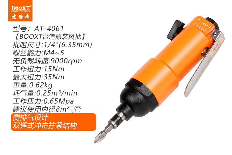 東莞市強勁五金工具有限公司提供臺灣BOOXT波世特品牌氣動工具,不自鎖氣動螺絲刀AT-4061廠家直銷,首件享特價。咨詢熱線:4008301980