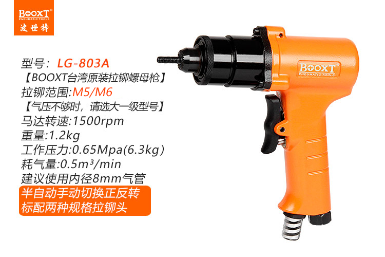 東莞市強勁五金工具有限公司提供臺灣BOOXT波世特品牌氣動工具,氣動拉鉚螺母槍LG-803A廠家直銷,首件享特價。咨詢熱線:4008301980