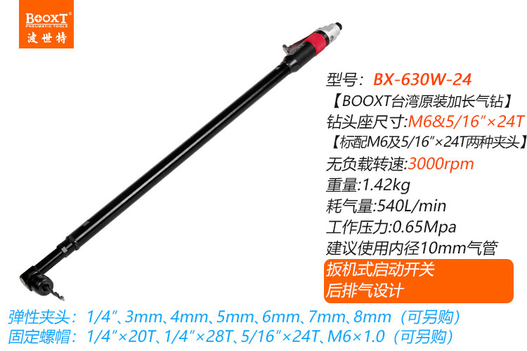東莞市強勁五金工具有限公司提供臺灣BOOXT波世特品牌氣動工具,特加長螺牙柄氣動鉆BX-630W-24廠家直銷,首件享特價。咨詢熱線:4008301980
