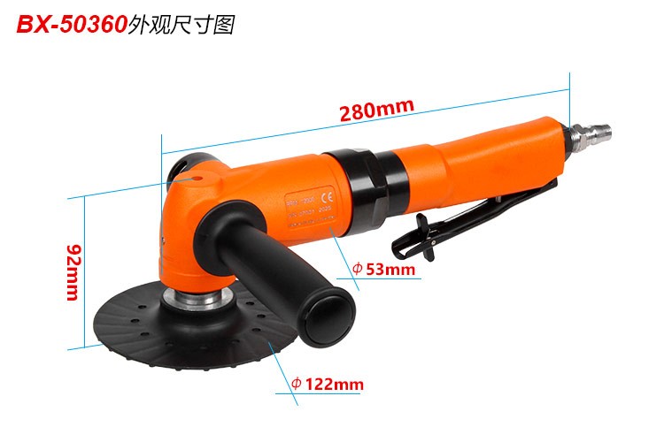 • 產品參數: 底盤尺寸:125mm*孔22mm【5寸】 馬達功率:1.6HP 空載轉速:12000rpm 耗 氣 量:1.15m3/min 全 長:280mm 重 量:1.7kg 【工業型】