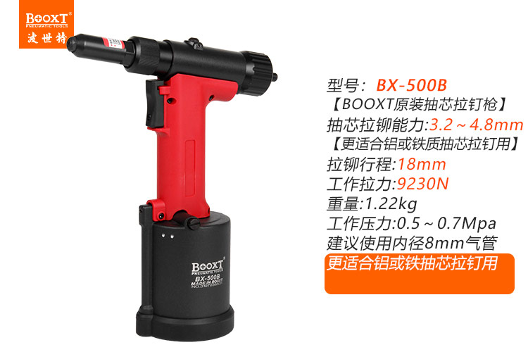 東莞市強勁五金工具有限公司提供臺灣BOOXT波世特品牌氣動工具,氣動拉釘槍BX-500B廠家直銷,首件享特價。咨詢熱線:4008301980