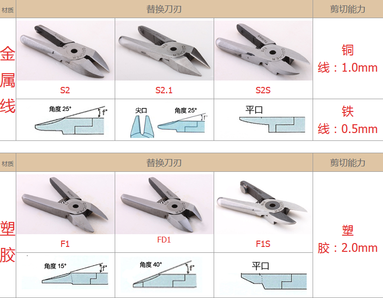 2.注意材質(zhì):材質(zhì)對(duì)選配刀刃非常重要,例如客戶(hù)要剪的銅鐵、材質(zhì)有鍍鈦、鍍烙、塑料材質(zhì)、加纖維超過(guò)20% 時(shí),一般刀刃不是剪不斷,就是使用壽命大大減少,塑料還容易在剪斷過(guò)程中碎裂。在這情形S刀刃應(yīng)選擇Z刀,塑料則建議使用電熱剪。
